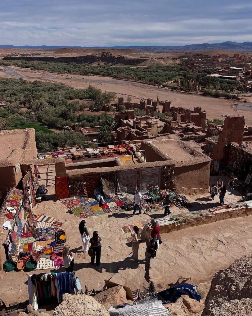 After breakfast, leave behind the bustle of Marrakech and journey through the High Atlas Mountains via the winding Tizi n’Tichka Pass (2,260 m). The landscape gradually transforms — from green valleys to arid peaks dotted with Berber villages built from red clay. You’ll stop to visit Aït Ben Haddou, Morocco’s most famous ksar and a UNESCO World Heritage site. Walking through its narrow alleys feels like stepping back in time. This ancient fortress has appeared in films like Gladiator and Lawrence of Arabia.